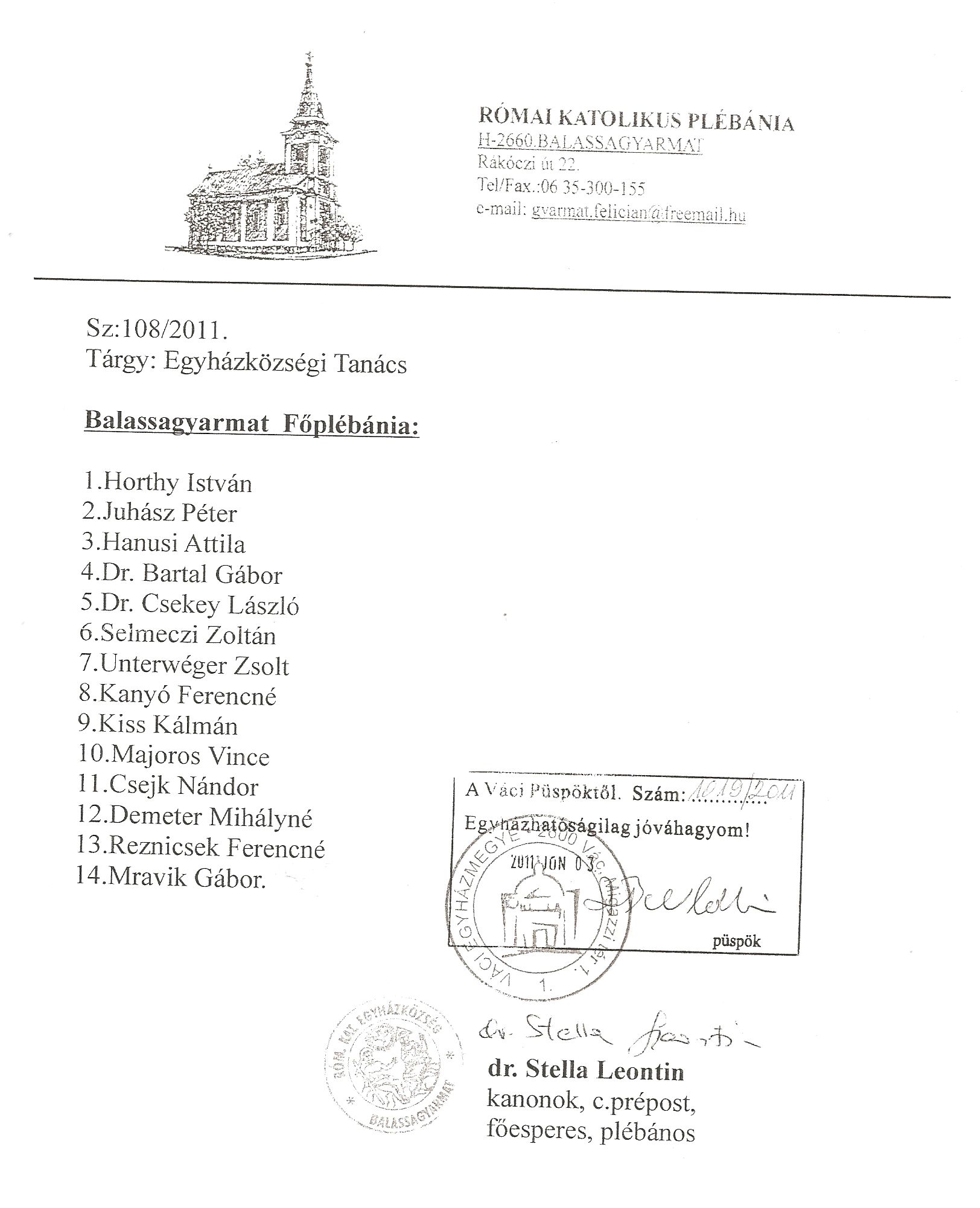 Balassagyarmat Főplébánia Egyházközségi Tanácsa /nagyításhoz kattintson a képre/