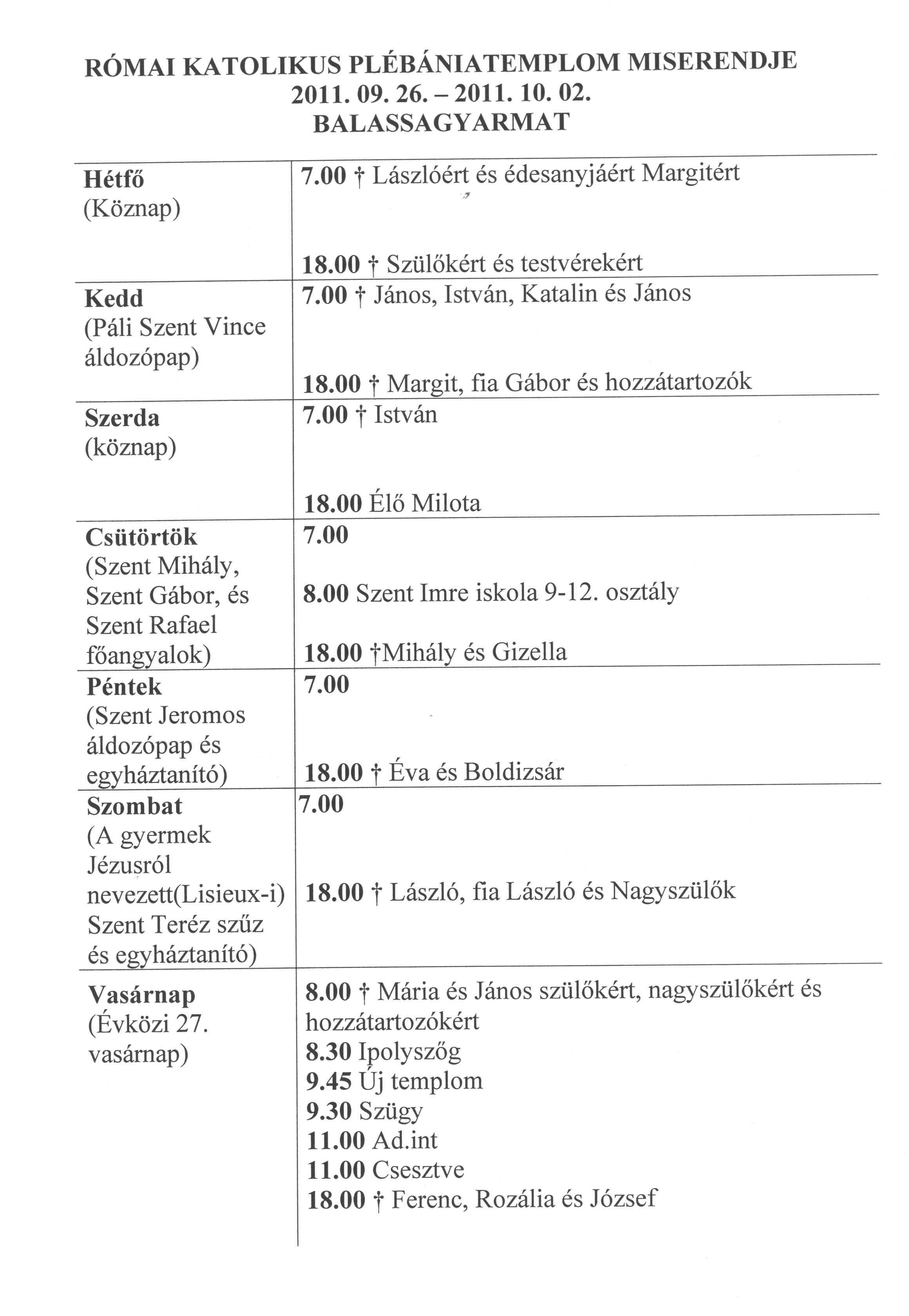 Miserend és miseszándék 2011.09.26 - 2011.10.02 /nagyításhoz kattintson a képre/